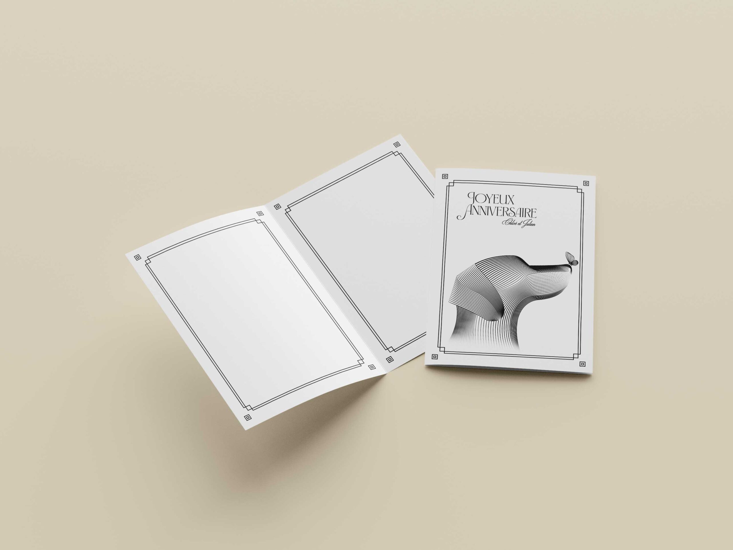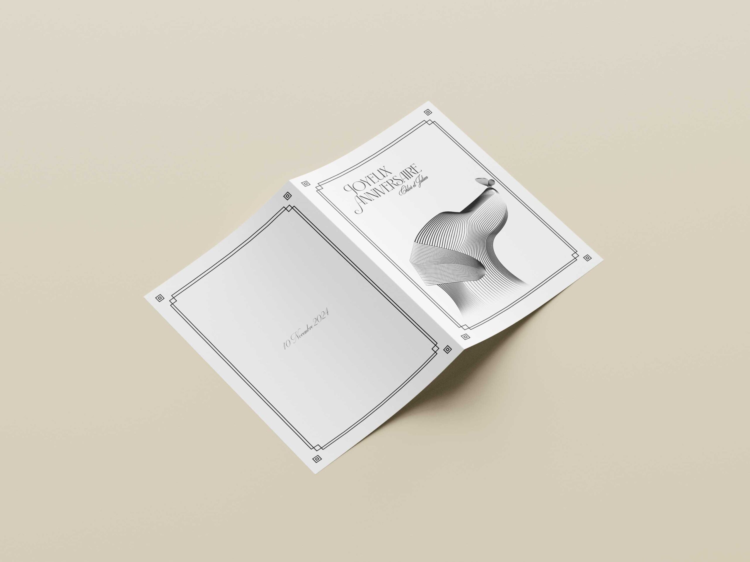 Création d’une carte illustrée avec un chien en moiré, inspiré du style d’Andrea Minini.