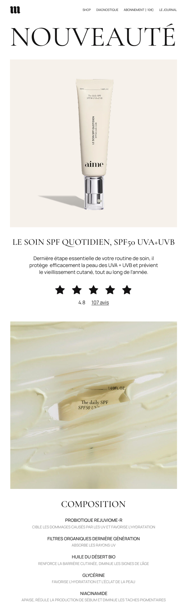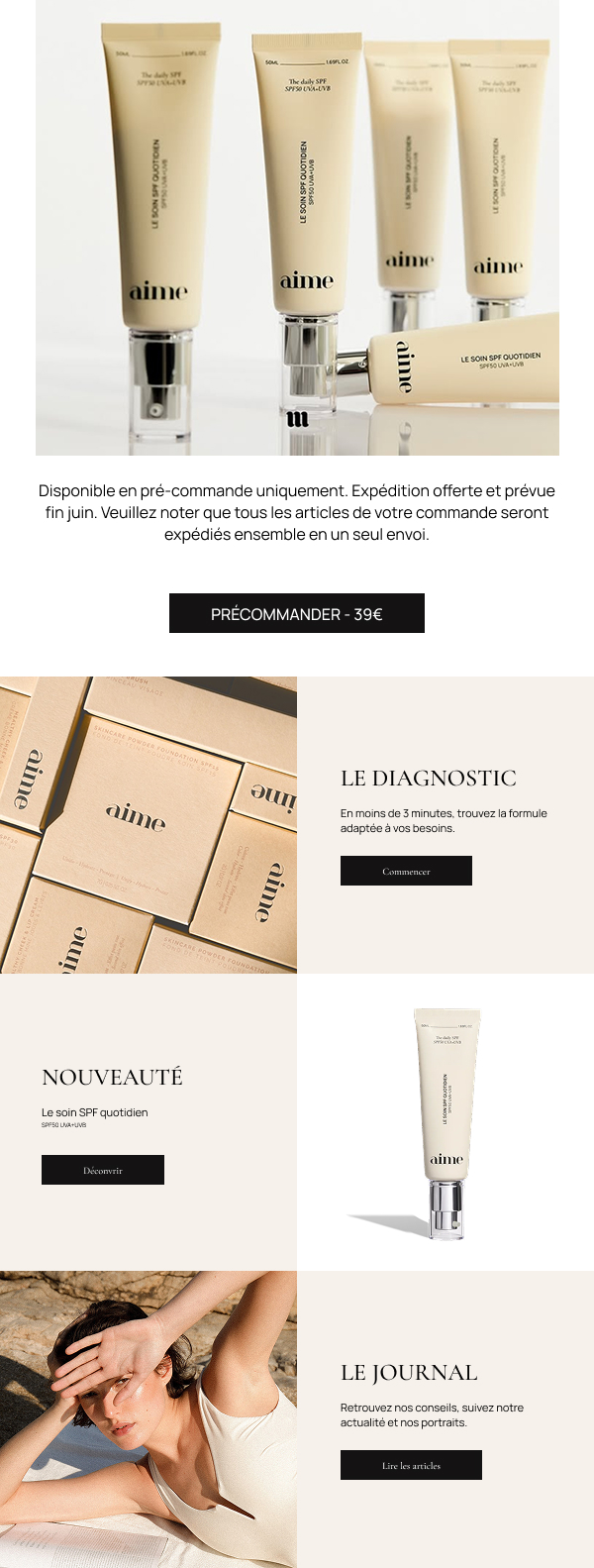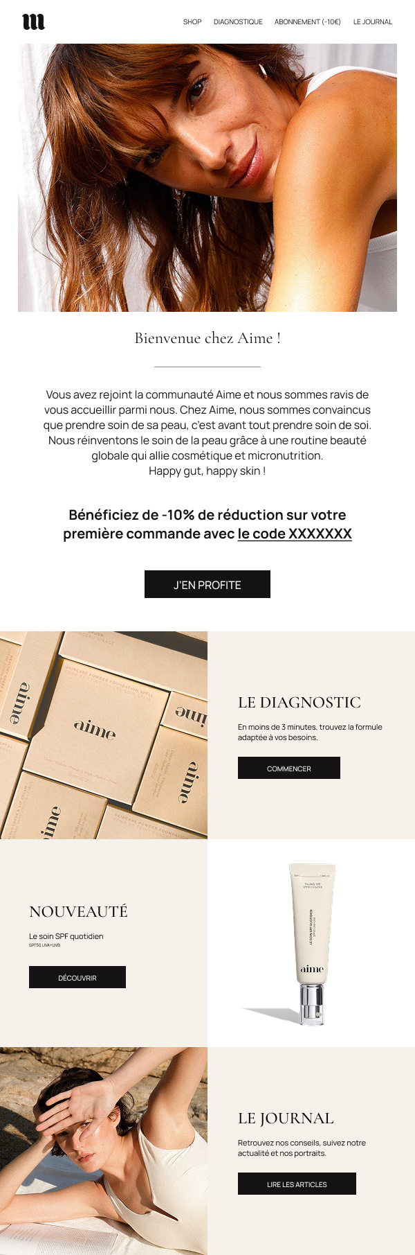 Création d’un welcome flow et d’une newsletter pour la marque de cosmétique AIME.